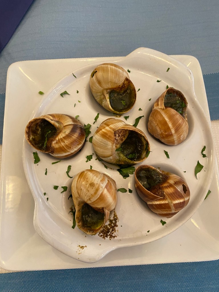 Katelyn and I thought we were getting a dozen escargot, and then he came out with a half-dozen. I then decided that they always seem like a better idea to get than they actually are.