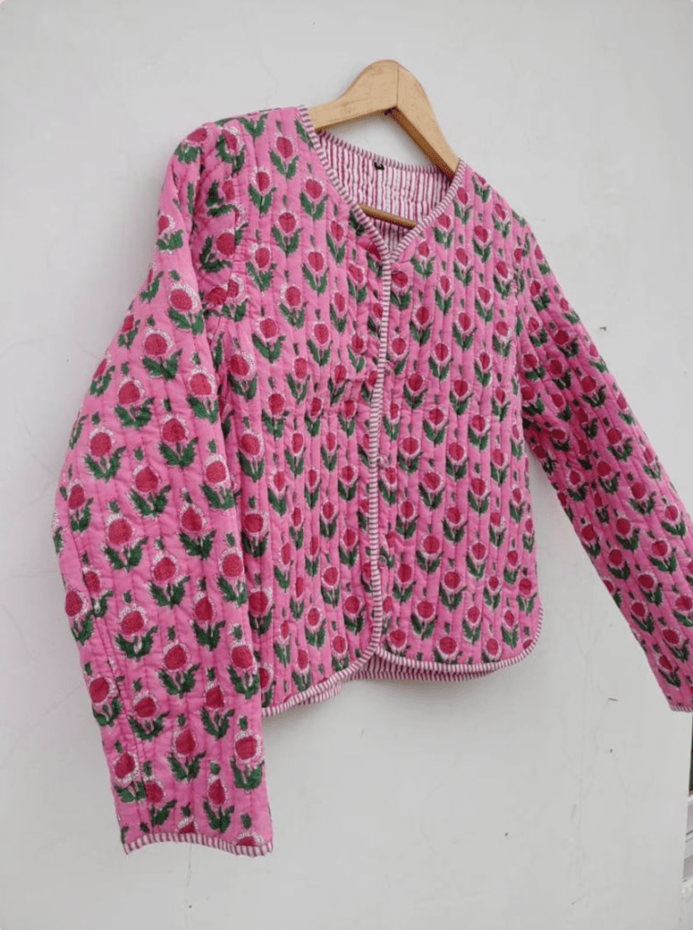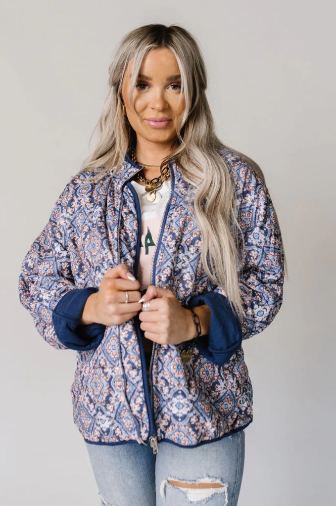 The quilted light jacket is something that is fashionable and can bring a pop of pattern or color to any outfit. Considering that it is “light”, you can bring it anywhere with you, and throw it on or off, depending on the weather. Tie it around the waste, or put it on your shoulders for that trendy “off the shoulder” look. Here are a few stylish and cute quilted light jackets that you should check out for this spring!