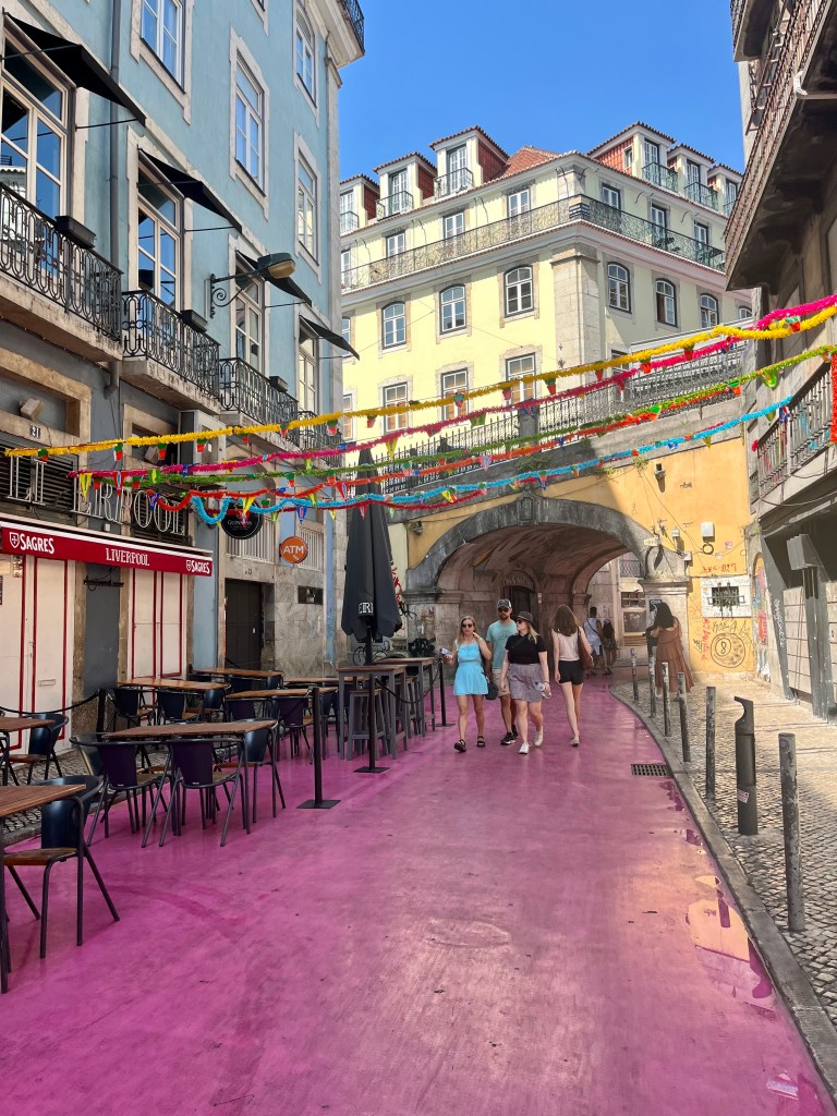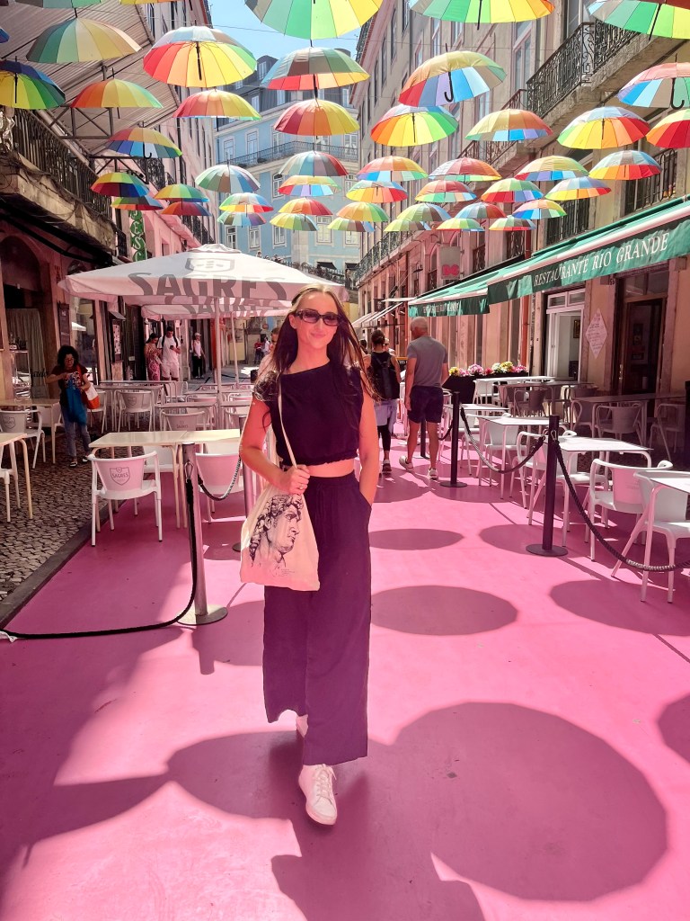 Explore “Calle Rosa de Lisboa” The Pink Street & Take Pictures Under The Rainbow Umbrellas