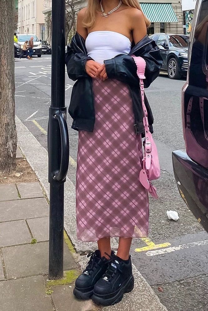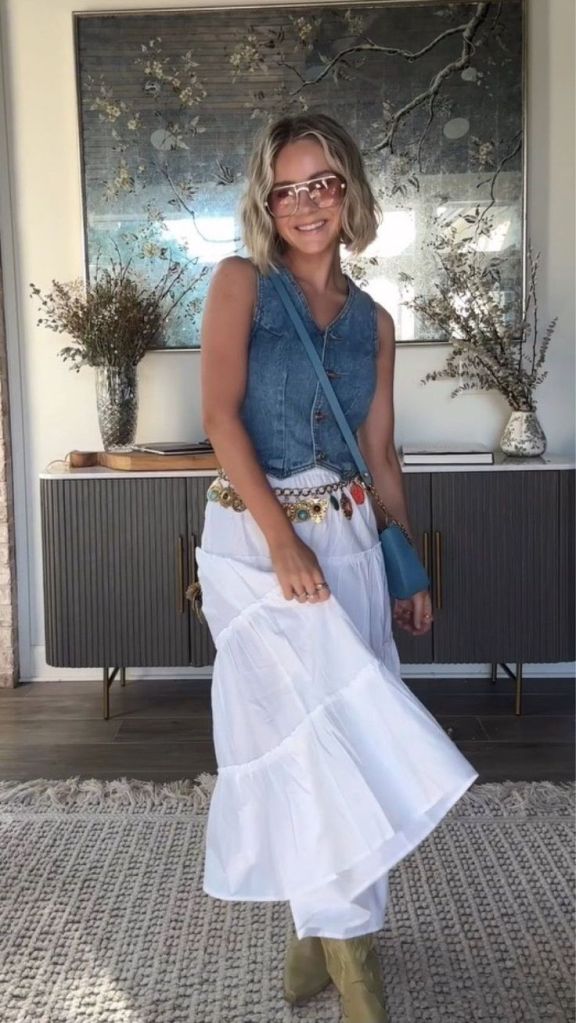 Something people are definitely wearing is a flowy skirt. Skirts come and go in fashion fads, but a comfy, flowy skirt has been trending all summer long! As mentioned above, it is usually paired with a denim vest, baby tee, or tank top. Check out the trending looks below to see what people are wearing!